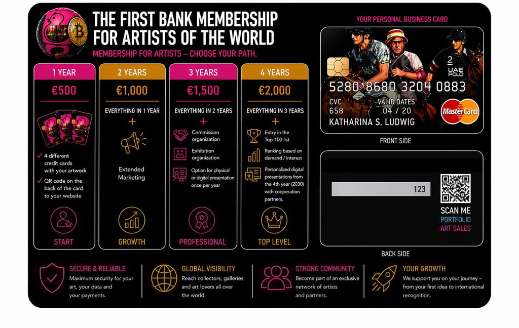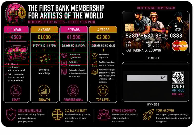 But the chasm between these concepts has grown vast. For years, I have been searching for a strategic concept to bridge the gap between the economy and the arts much in the way a wedding ring is a work of craftsmanship, yet its accompanying vows constitute a universally recognized statement. When a goldsmith’s wedding ring is recognized as a work of art, it becomes seamlessly integrated into and accepted by the global sphere. This transformation moving from the specific context of the art world into the daily visibility of commerce serves as a safeguard for artists and their creations. For a long time, I sought that connecting link—that source of mutual added value. The answer lies in gaining attention through credit card designs. Everyone owns one; everyone wants one and so, the circle is complete.