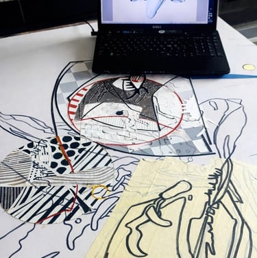 Meine Arbeit reicht von der Malerei über Mode und eklektische Kunst bis hin zu Kunstsalons und meiner eigenen Bindetechnik, Cutters Cutting Art.